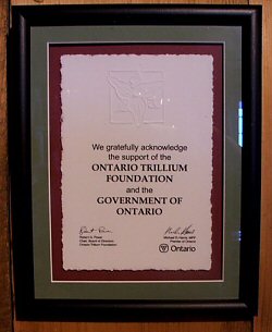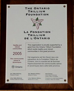 Jerry McKenzie and Rick Hughes present a plaque of recognition from the Ontario Trillium Foundation are watched by Diane Finley MP and Haldimand Mayor Marie Trainer. The Blacksmith Shop and new tower are 2 of the many projects funded by the OTF. Please feel free to browse through this site. | |||
