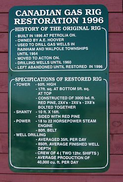 The original 16 member group who restored this Canadian rig was then known as the Antique Canadian Gas Rig Restoration Crew and for most of them drilling gas wells had been a way of life. They decided to create the display because of the significant role natural gas has played in the development of the Region of Haldimand-Norlfolk (H-N).