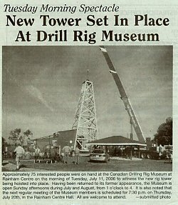 Award from the Petroleum History Society based in Calgary, Alberta for the CDRM Inc.’s contribution to the preservation of Canada’s Drilling Heritage.http://www.petroleumhistory.ca/ Plaque recognizing the aid from the Ontario Trillium Foundation. Speeches by Mayor Marie, MPP and rig member Toby Barrett, rig President Jerry McKenzie and Councilor Buck Sloat.