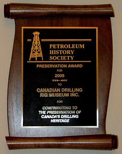 Award from the Petroleum History Society based in Calgary, Alberta for the CDRM Inc.’s contribution to the preservation of Canada’s Drilling Heritage.http://www.petroleumhistory.ca/ Plaque recognizing the aid from the Ontario Trillium Foundation. Speeches by Mayor Marie, MPP and rig member Toby Barrett, rig President Jerry McKenzie and Councilor Buck Sloat.